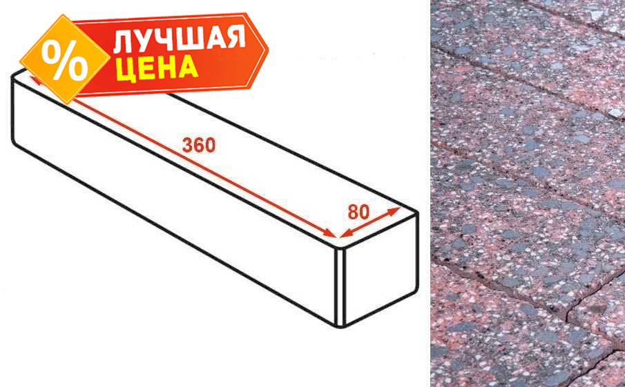 Плитка тротуарная Готика Granite FINERRO, ригель, Дымовский 360х80х80 мм